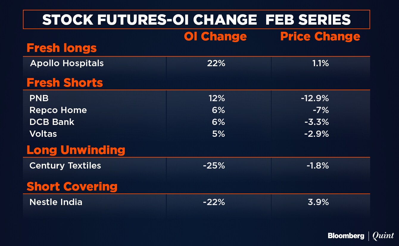 - February series: Nifty open interest down 2 percent, Bank Nifty OI unchanged.