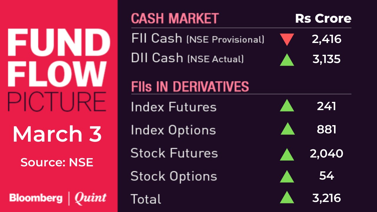 • Nifty March futures open interest up 3.4 percent, adds 4.6lk shares in open interest