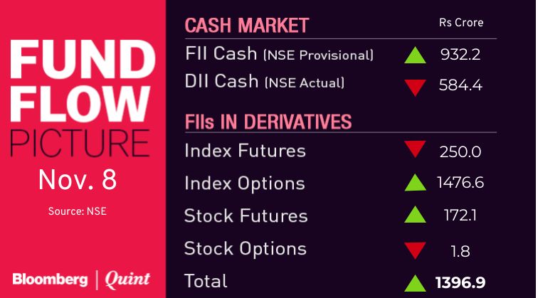 - Nifty Bank November futures closed at 30,759, premium of 9.6 points versus 31.3 points.
