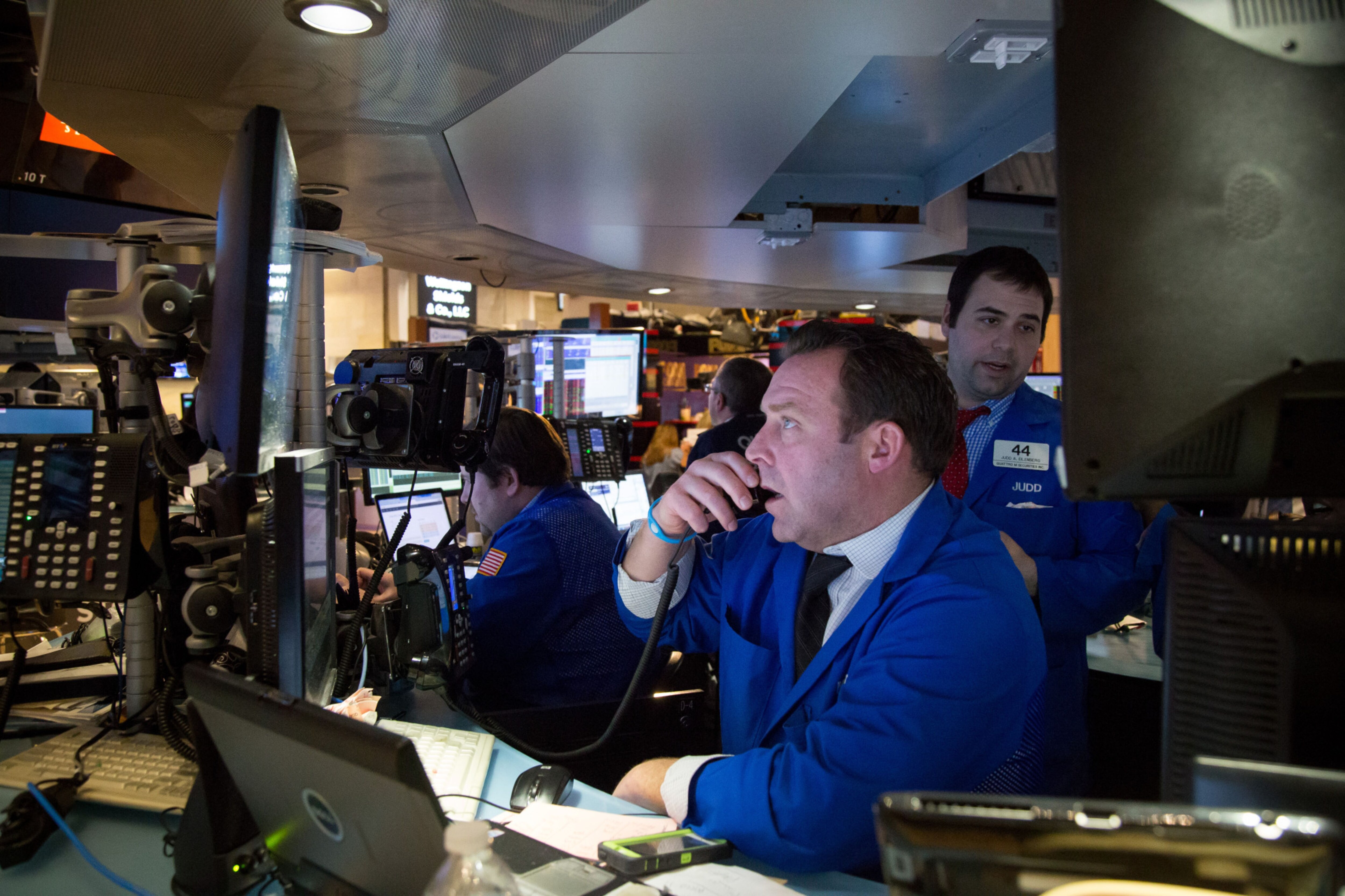 Traders work on the floor of the New York Stock Exchange in New York, U.S. (Photographer: Michael Nagle/Bloomberg)