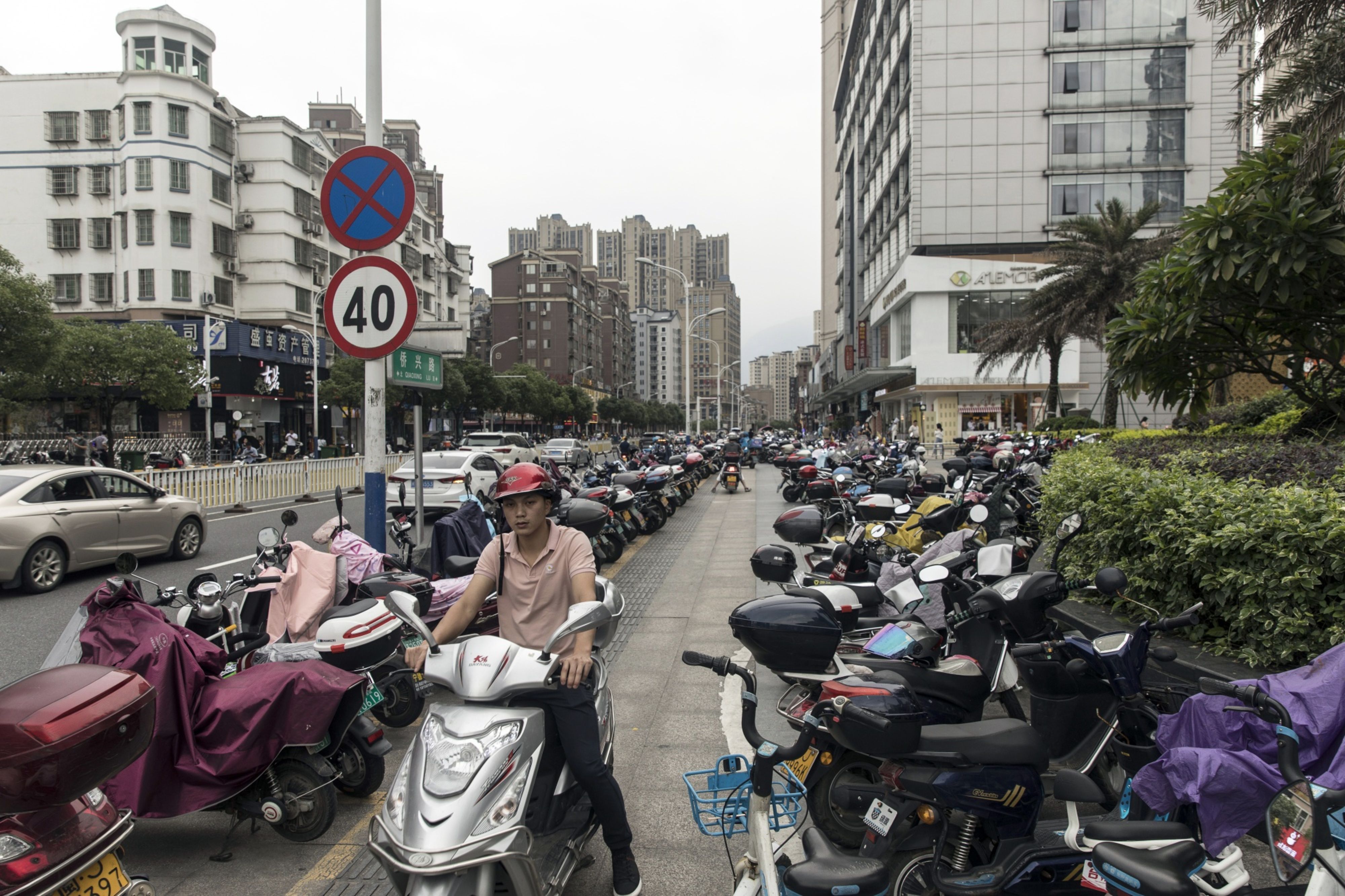 A man sits on a motorcycle in Ningde, Fujian province, China. (Photographer: Qilai Shen/Bloomberg)