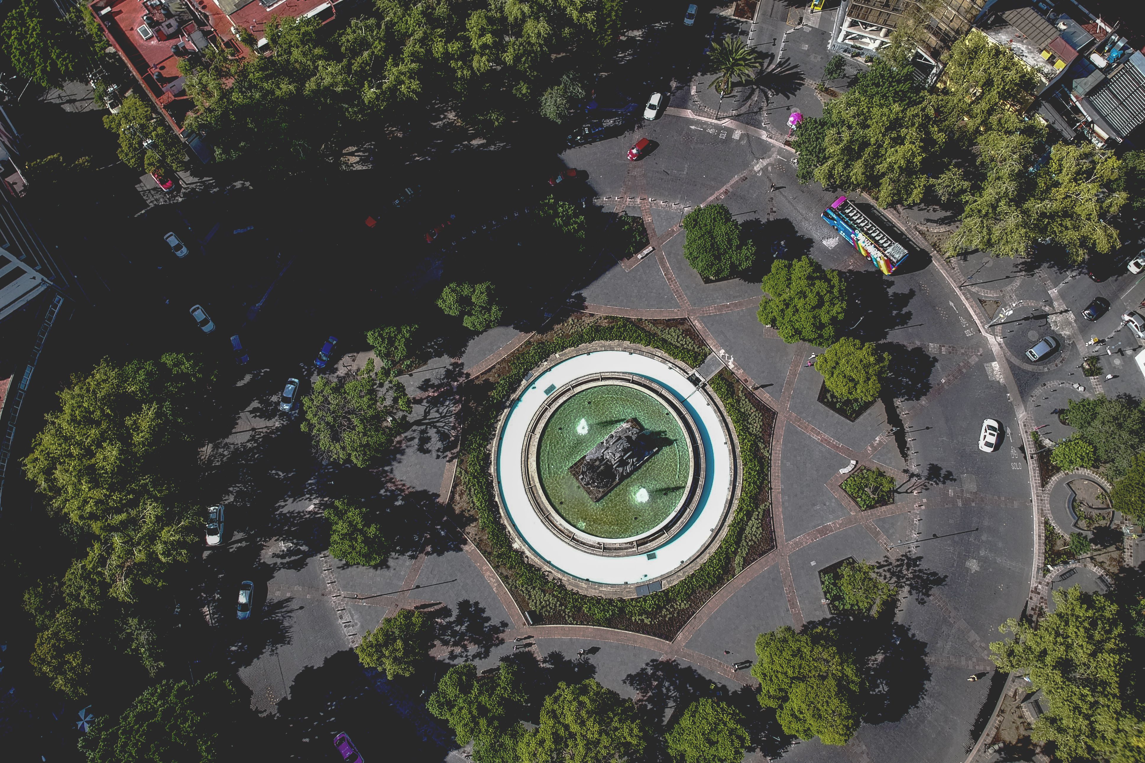 Vehicle move past the Fountain of Cibeles in an aerial photograph taken over Mexico City, Mexico. (Photographer: Alejandro Cegarra/Bloomberg)