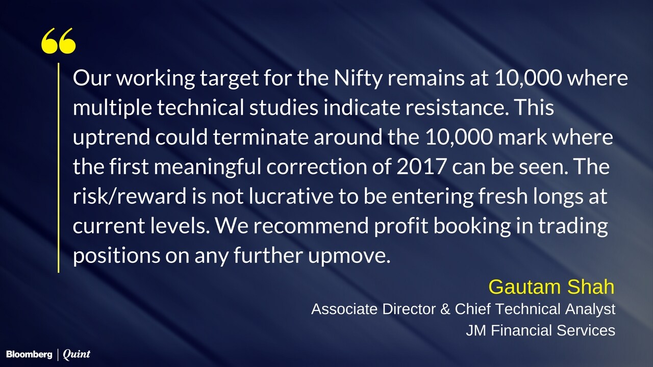 - Resistance seen at 10,000 levels with open interest concentration of 44.5 lakh shares