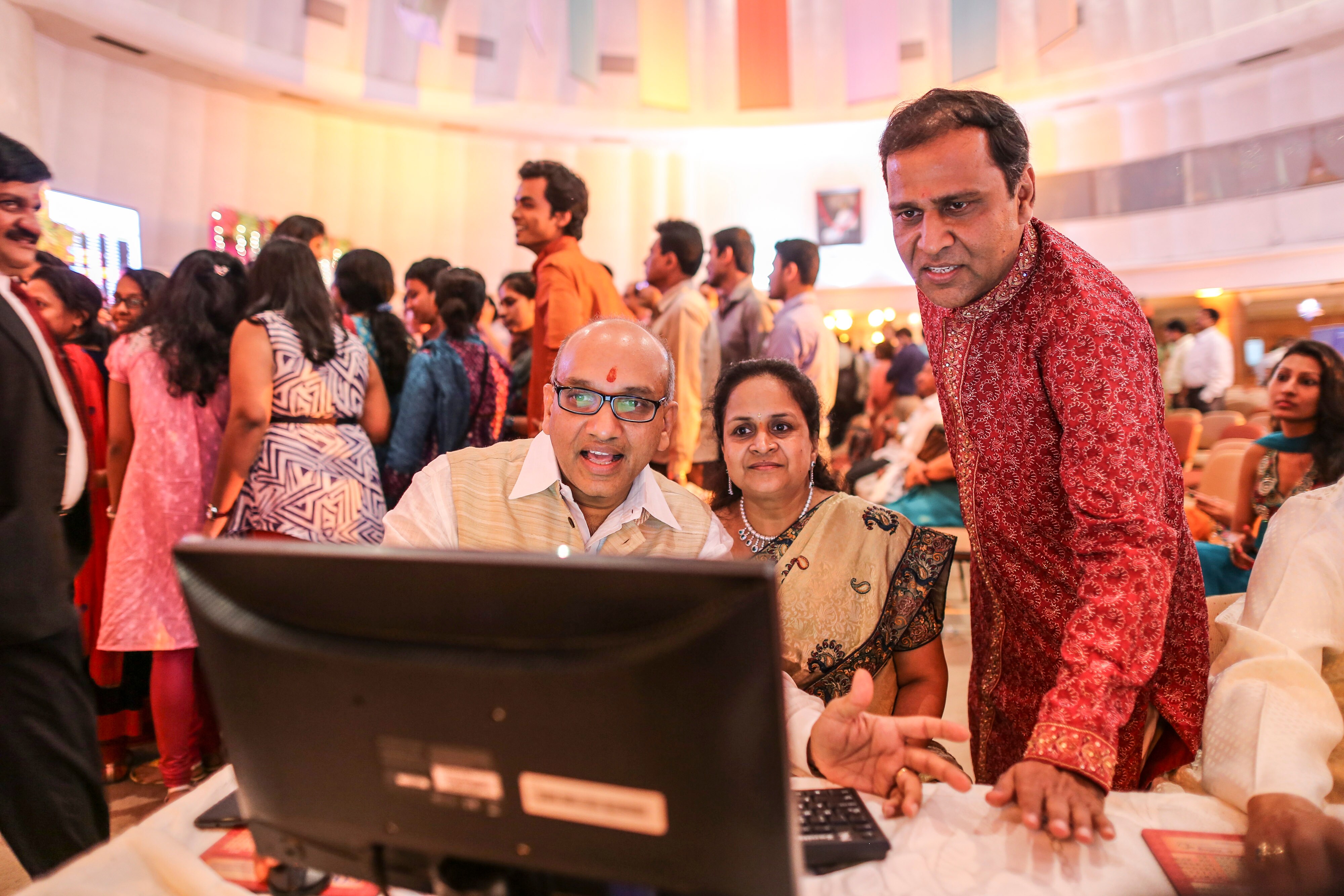 Brokers along with their families trade during a special holiday session on the occasion of Diwali, the festival of light, at the Bombay Stock Exchange (BSE) in Mumbai, India (Photographer: Dhiraj Singh/Bloomberg)