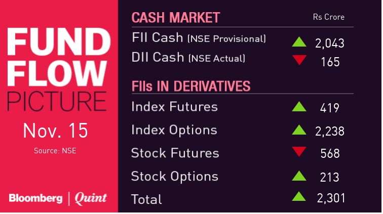 - Nifty November open interest down 0.3 percent; Nifty Bank November open interest up 11 percent