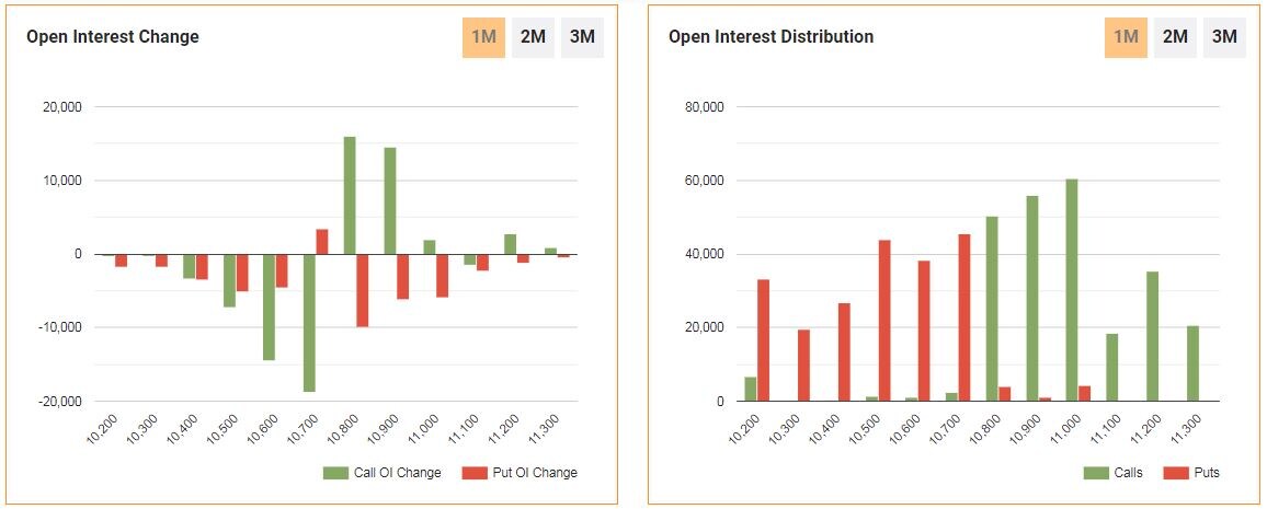 - Maximum open interest for January series call at 11,000 strike price, open interest at 23.9 lakh shares.