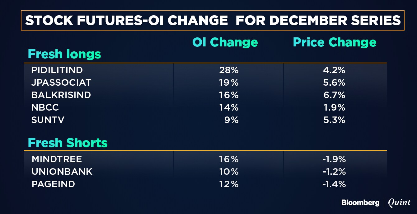 - December Futures: Nifty OI up 3 percent , Bank Nifty OI down 12 percent.