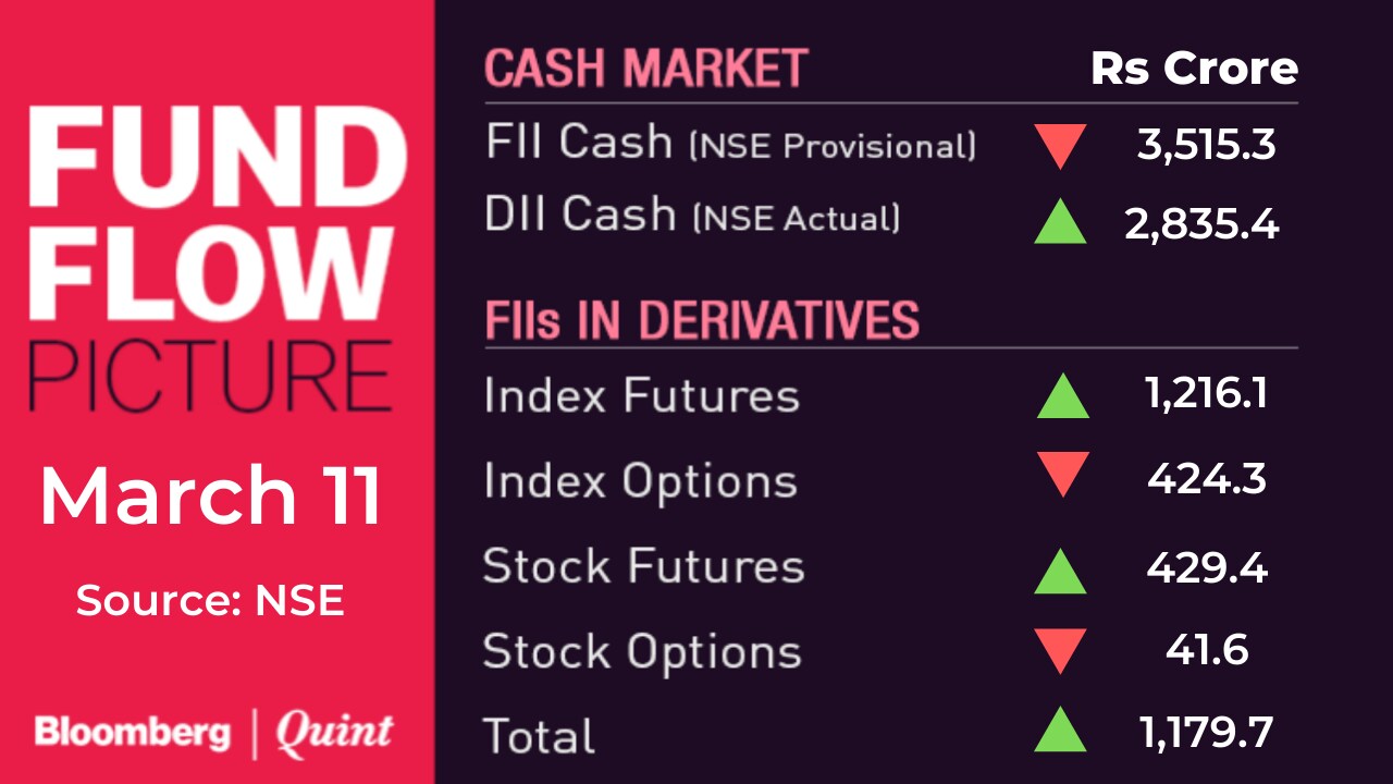 - Nifty March futures OI down 2 percent, sheds 3.3 lakh shares in OI.