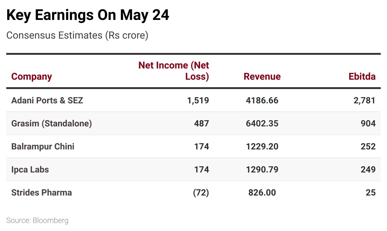 Earnings Today: Adani Ports, Grasim Industries, Zee Media Corporation, Balrampur Chini, Dalmia Bharat Sugar and Industries, Ipca Laboratories, Jyothy Labs, RITES, Strides Pharma Science, Gujarat Alkalies and Chemicals, Asian Granito, e-Clerx Services, Bank of India, Aster DM Healthcare, Minda Industries, Metropolis Healthcare