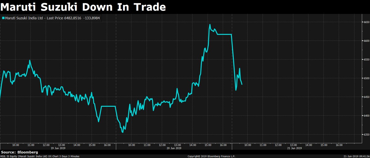 Shares of the country's largest carmaker Maruti Suzuki India Ltd. fell 3.3 percent, the most in a month, to Rs 6,400.