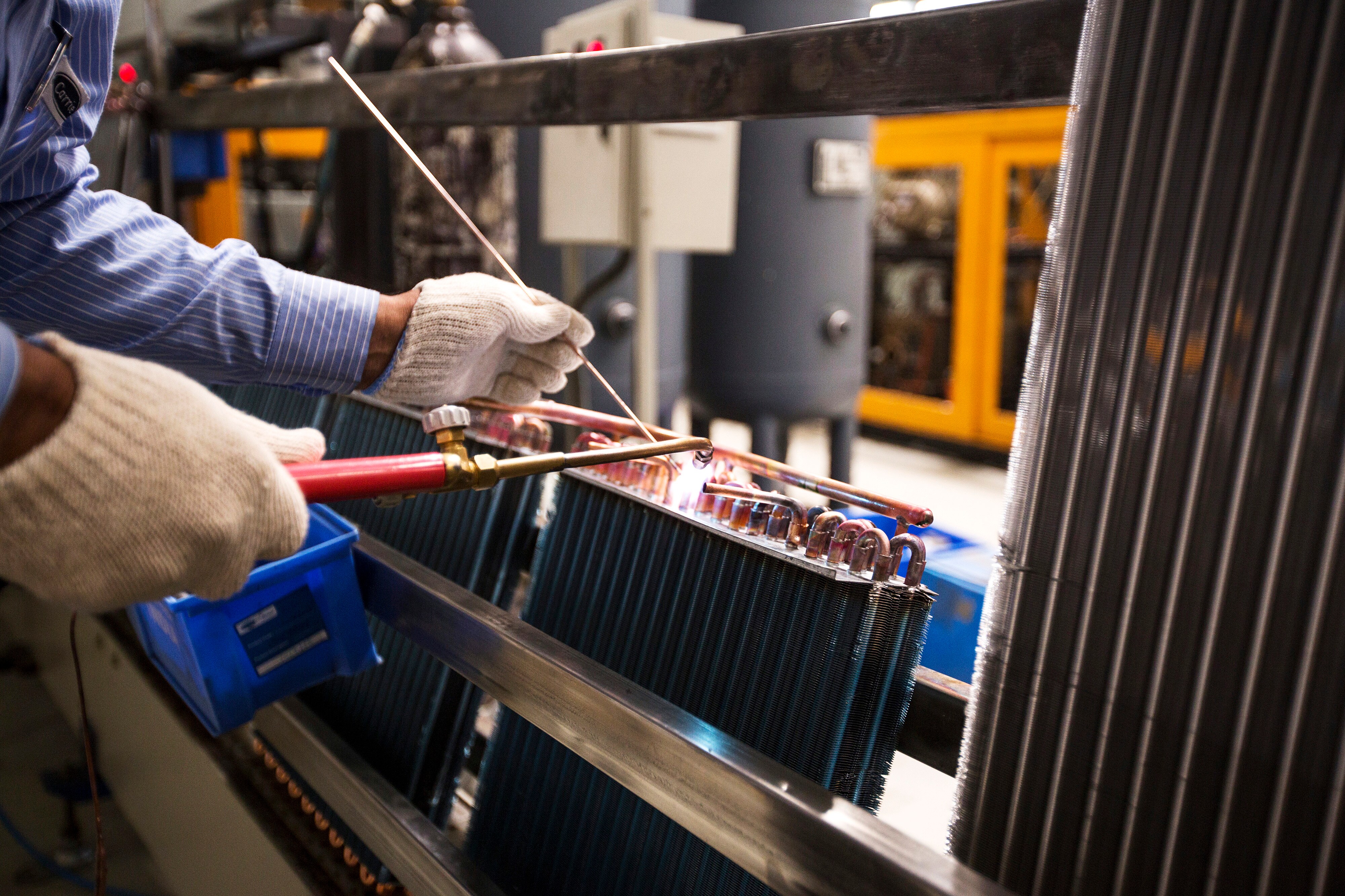 Inside an air conditioner manufacturing facility in Haryana, India (Photographer: Udit Kulshrestha/Bloomberg)