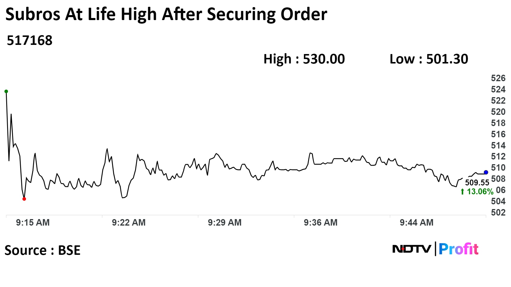 Shares of Subros rose as much as 17.91%, the highest since its listing on BSE on July 2, 1997, before paring gains to trade 13.47% higher at 9:44 a.m. That compares to a 0.05% advance in the NSE Nifty 50.