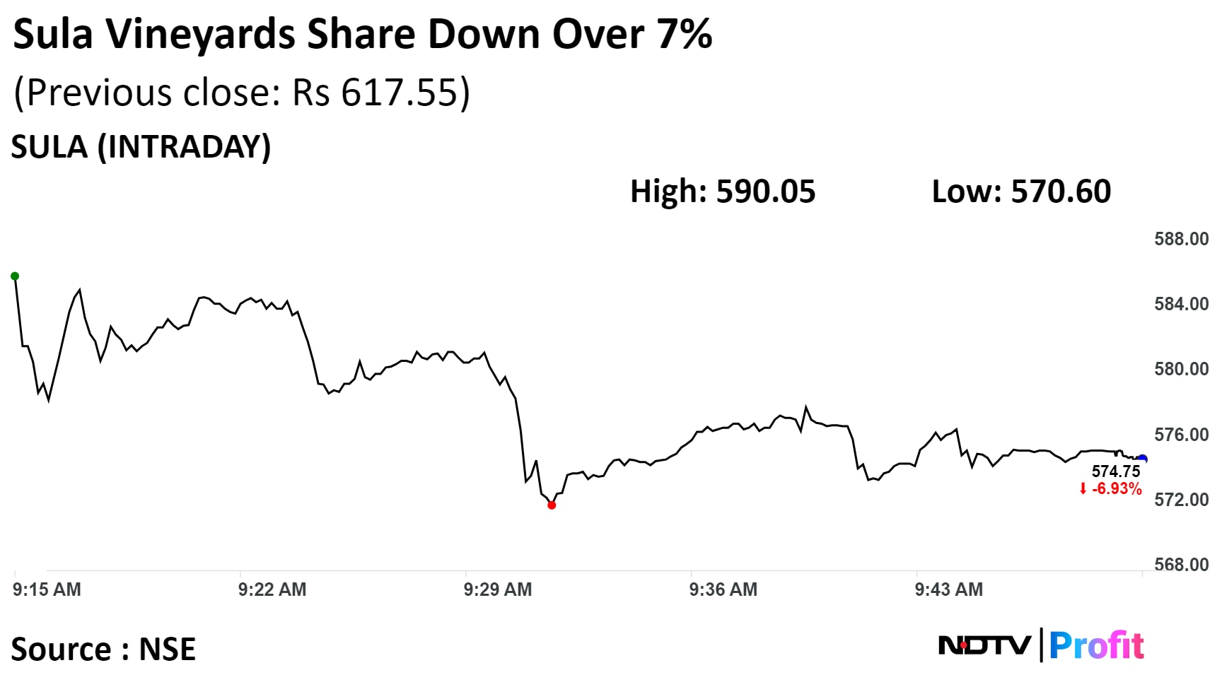 Shares of Sula Vineyards Ltd. tumbled over 7% on Monday after two large trades.
