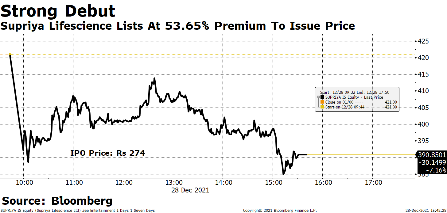 Shares of Supriya Lifescience Ltd. surged on market debut after investors piled into its initial public offering.