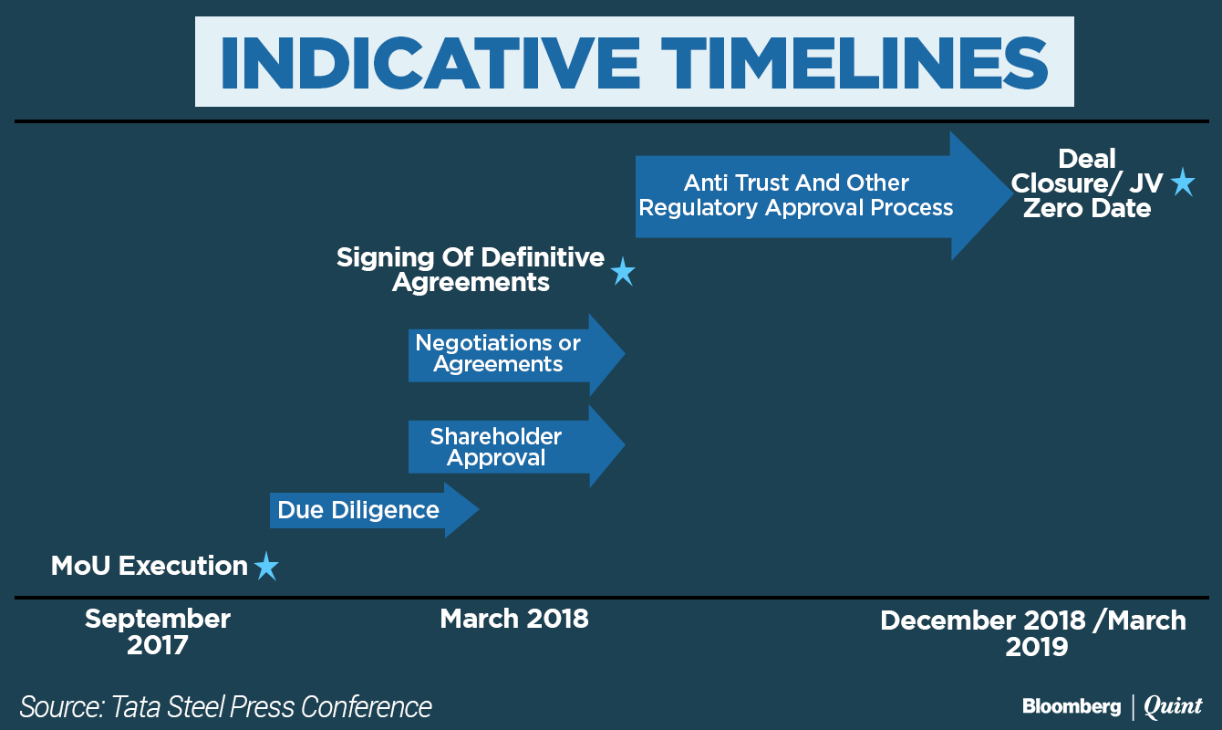 The deal will be signed in early 2018, and is expected to reach closure by 2019. The financial impact will reflect on Tata Steel's books after it is completed, he said.
