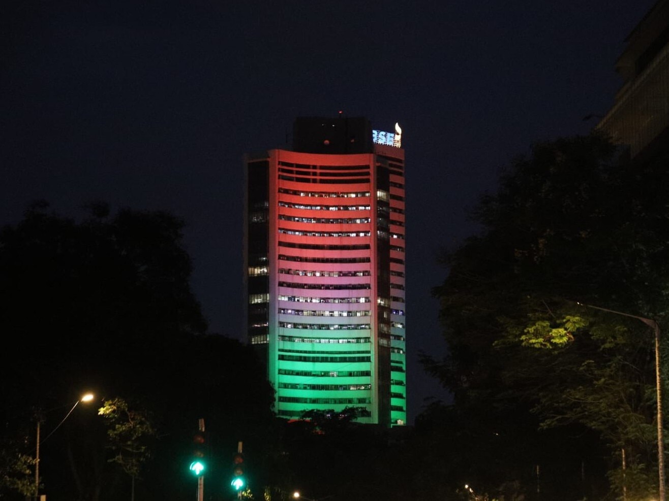 File Photo of BSE Building lit up with tricolour on the occassion of Independence Day. (Photo source: BSE India post on X)