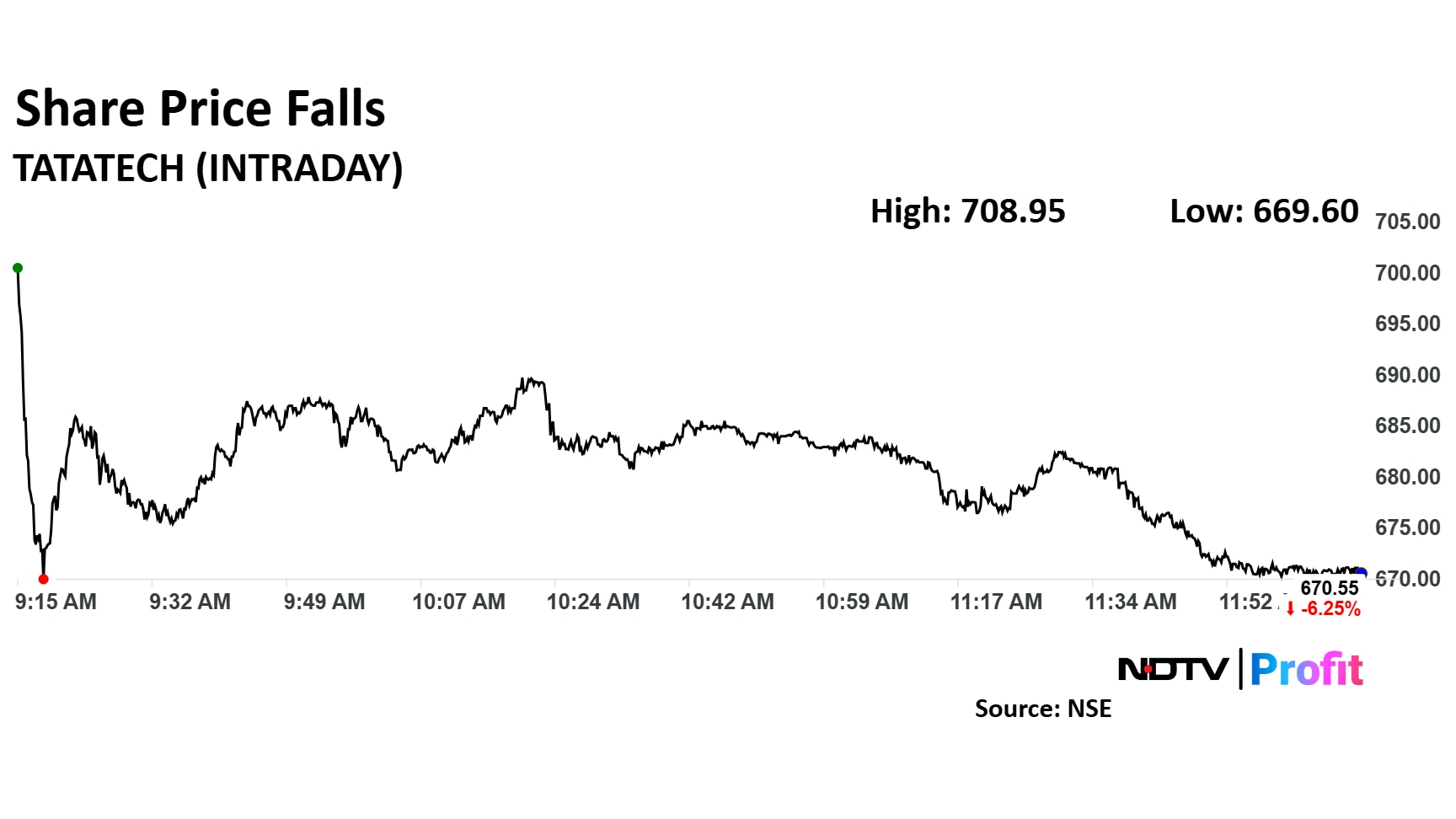 Tata Technologies share price fell as much as 6.38% to Rs 669.60 apiece. (Photo: Tata Technologies/X)