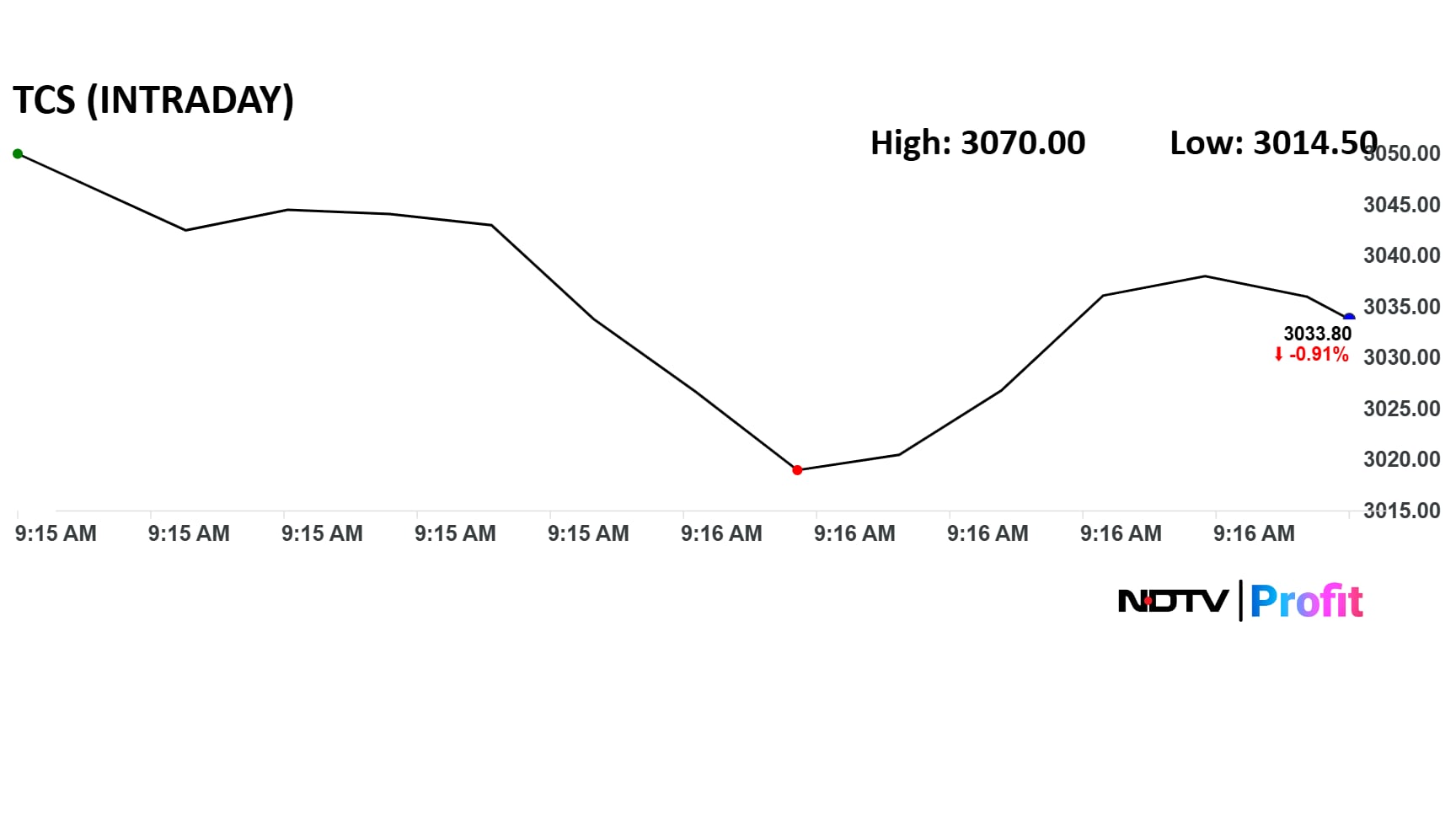 TCS share price fell 1.5% intraday to Rs 3,014 apiece.