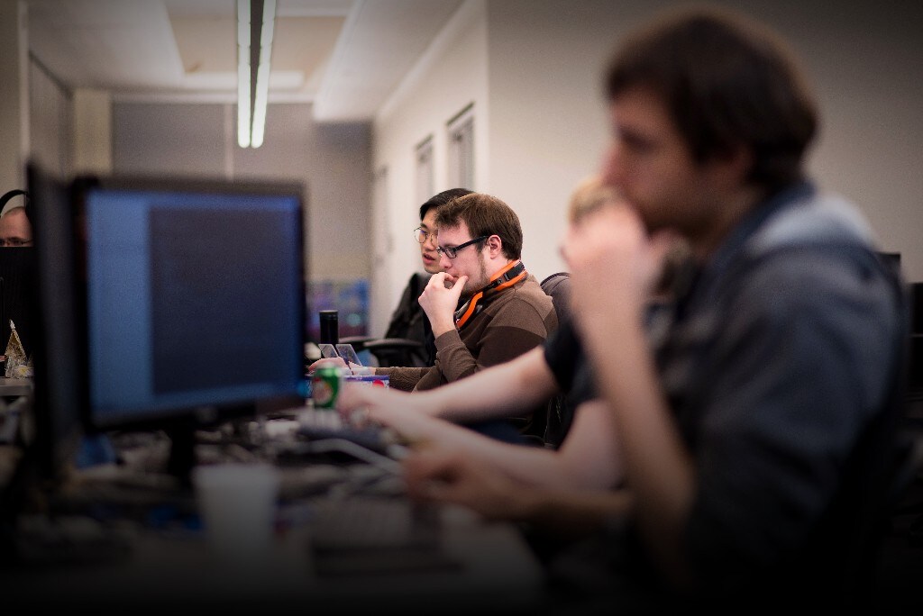 Programmers work on software coding inside a tech company. (Photographer: James MacDonald/Bloomberg)