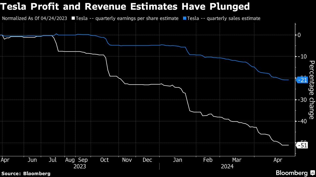 “Up until several weeks ago, the key focal point into the first-quarter result was Tesla's vehicle sales fundamentals, with Tesla facing an extremely challenged set-up amid a sharp delivery miss, risk of no growth in volume in 2024, and further pressure to margins,” said Barclays Plc analyst Dan Levy, who has the equivalent of a neutral rating on the stock.