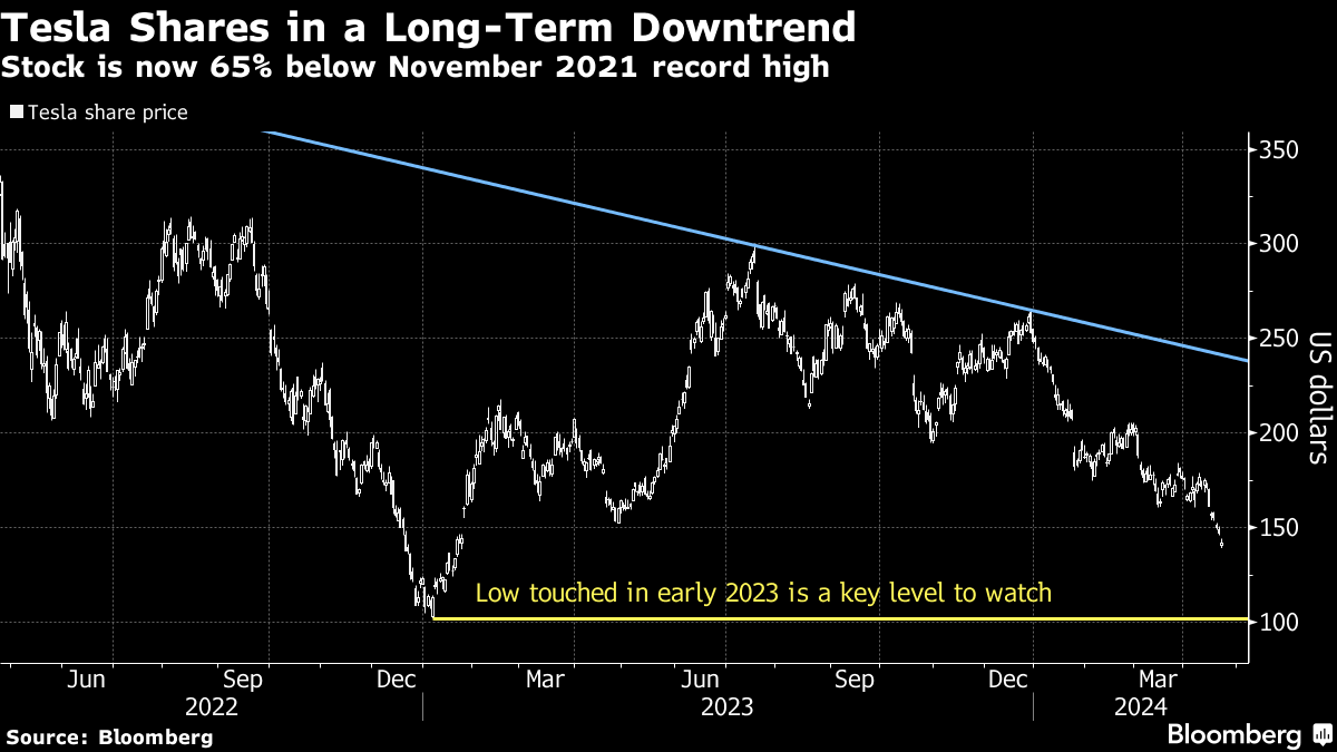 The slide has raised the risk that any disappointment in Tuesday's earnings report or Musk's conference call could snowball, according to technical analysts who analyze moves in share prices to predict their future path. To them, the drop below $150 has already breached a key support level.