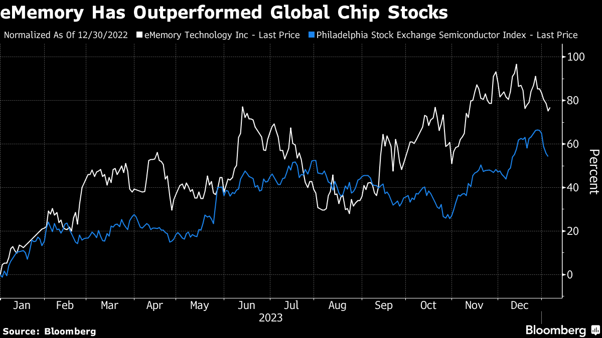 The fund returned 72% last year to outperform 95% of peers, according to Bloomberg-compiled data. Its latest factsheet shows top holdings included eMemory Technology Inc. — up more than 80% in 2023 — and Taiwan Semiconductor Manufacturing Co.