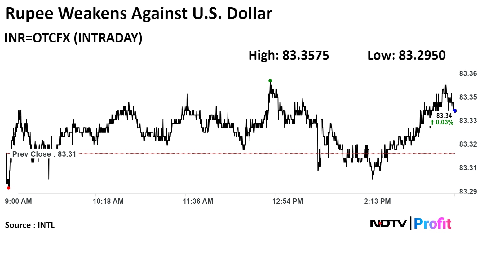 The local currency closed two paise weaker against the US dollar at Rs 83.35.