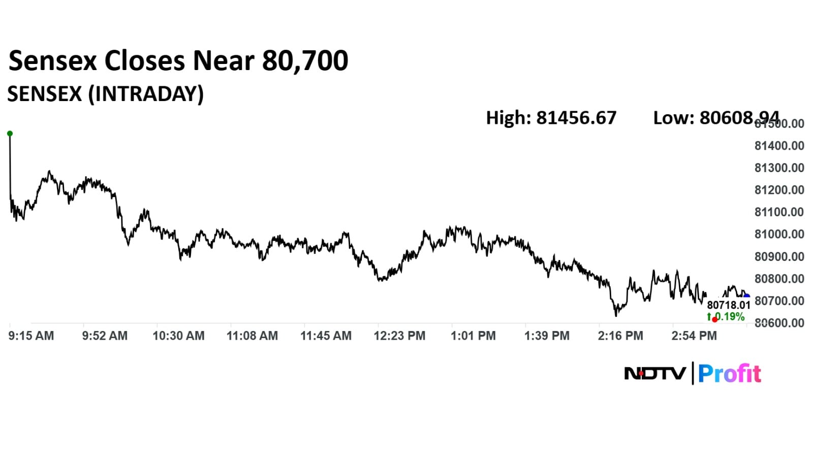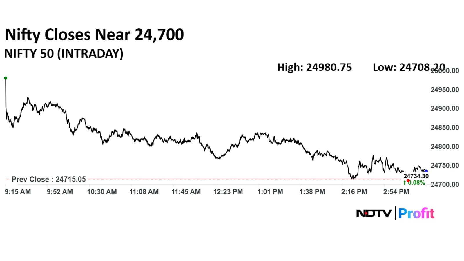 The NSE Nifty 50 settled 19.25 points or 0.08% higher at 24,734.3 and the BSE Sensex closed 150.3 points or 0.19% up at 80,718.01. The Nifty rose as much as 1.08% during the day to 24,980.75, while the Sensex was up 1.10% to 81,456.67.
