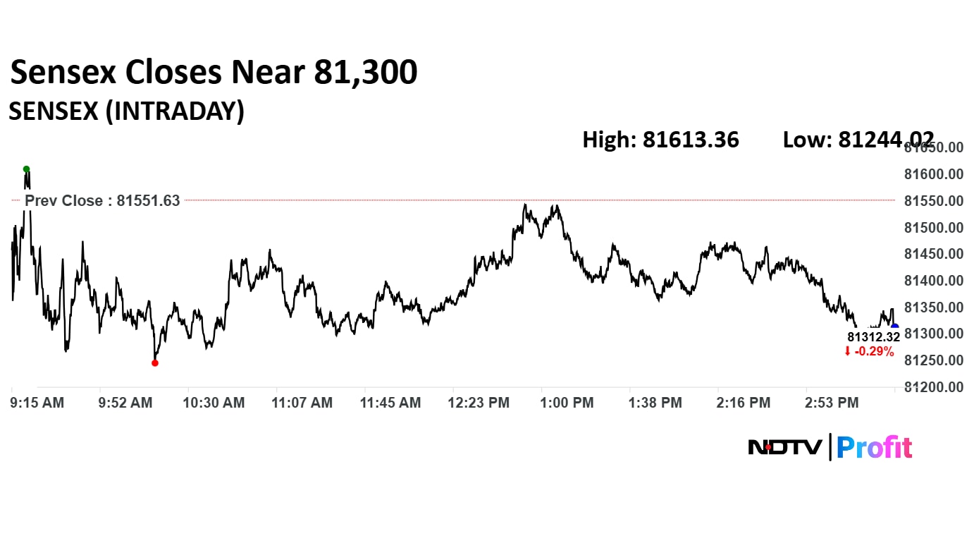 The NSE Nifty 50 closed 73.75 points or 0.3% lower at 24,752.45 and the BSE Sensex ended 239.31 points or 0.29% down at 81,312.32. During the day, the Nifty fell 0.36% to 24,737, while the Sensex dropped 0.38% to 81,244.