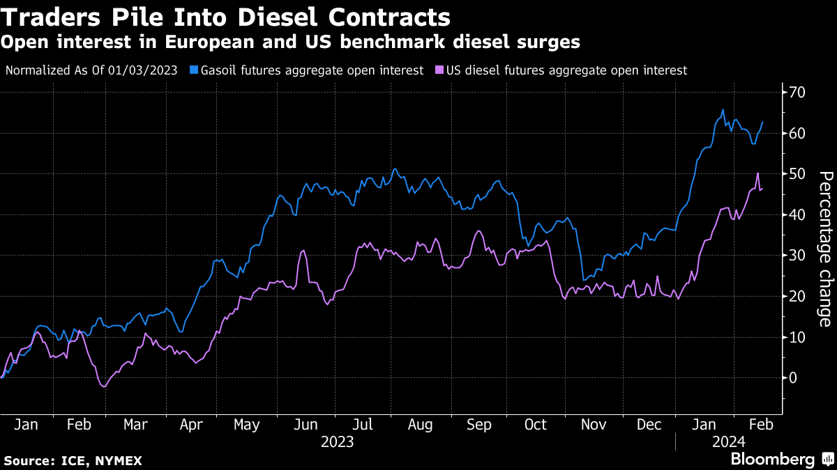 While crude has drifted in a $10 band this year, fuel markets have been roiled by attacks in the Red Sea, refinery outages and heavy maintenance, a deep freeze in the US and Ukrainian drone attacks on Russian refineries. The end result is one of the most active trading periods for refined products in several years.