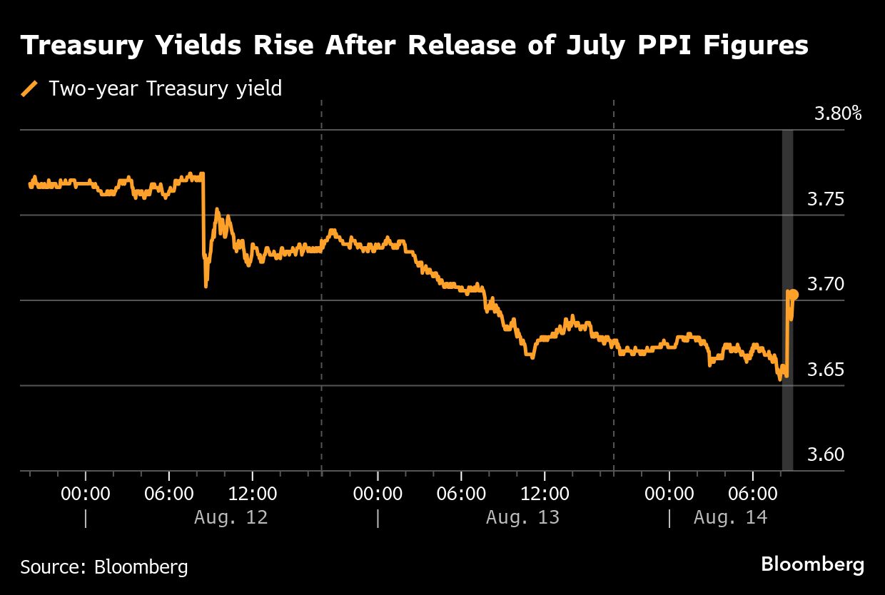 The moves followed the producer price index increasing 0.9% in July, more than economists had estimated. The reading suggested companies are raising prices to offset costs associated with higher trade tariffs.