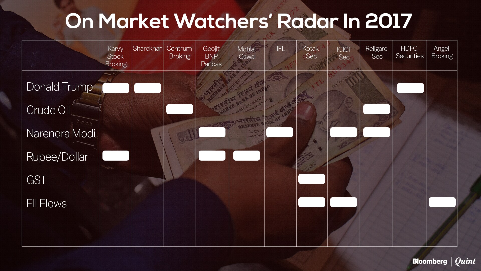 Brokers in India will keenly watch two policymakers - U.S. President-elect Donald Trump and Indian Prime Minister Narendra Modi – besides the usual suspects like crude oil prices, the level of the rupee, and foreign fund flows.