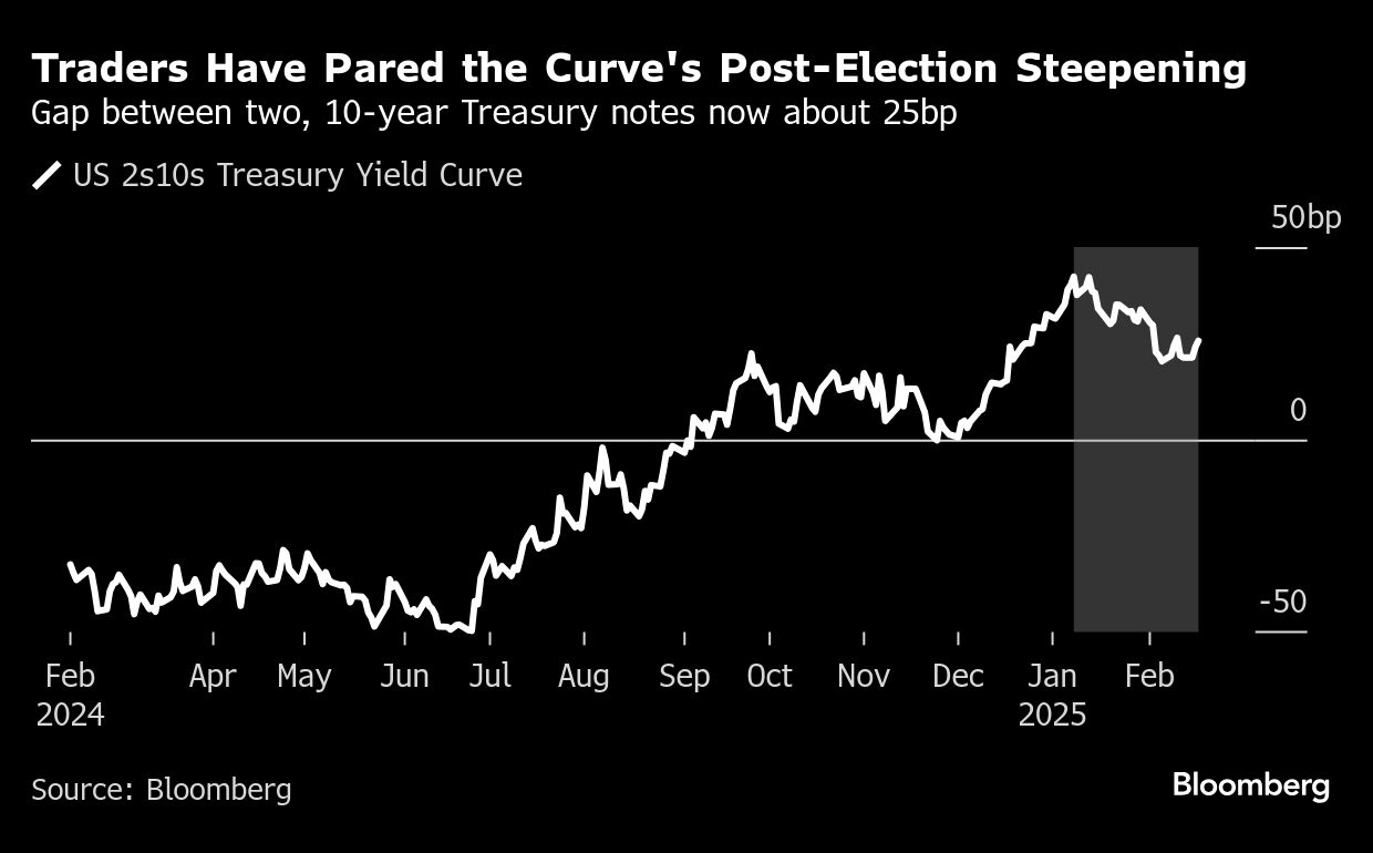 “We had this bond vigilante-driven Trump trade in the run-up to the election and after,” said Guneet Dhingra, the head of US rates strategy at BNP Paribas in New York. “But if you look at what's happened since the inauguration, it's been the exact opposite and the curve has been flattening.”