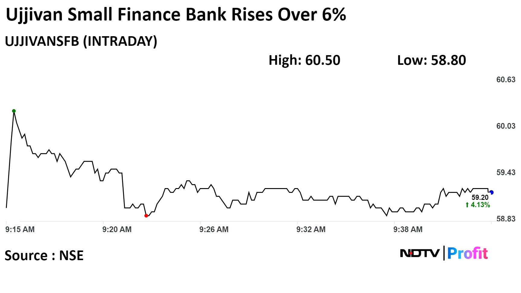 Shares of Ujjivan Small Finance Bank Ltd. rose over 6% on Thursday after its total deposits jumped in the third quarter.