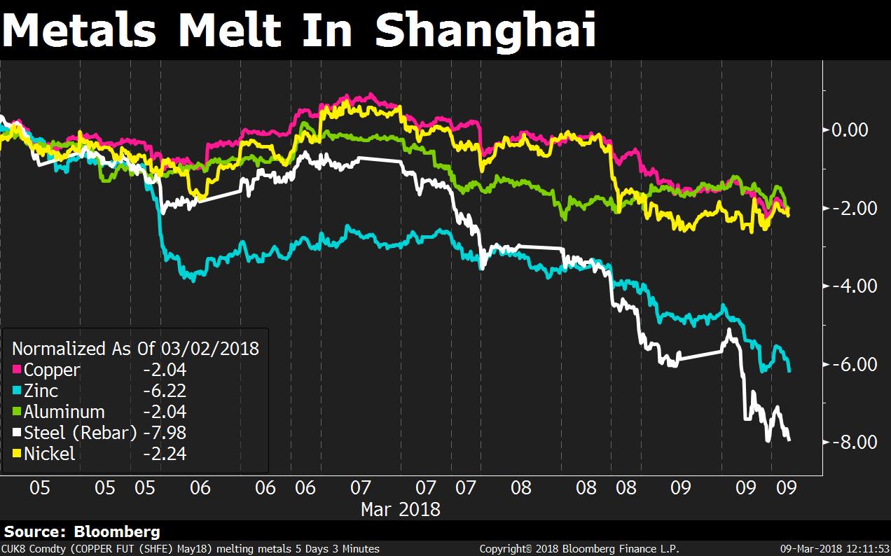 Steel fell more than 7 percent for the week, most since Jan. 19, in the Shanghai Futures Exchange while aluminium declined 2 percent.