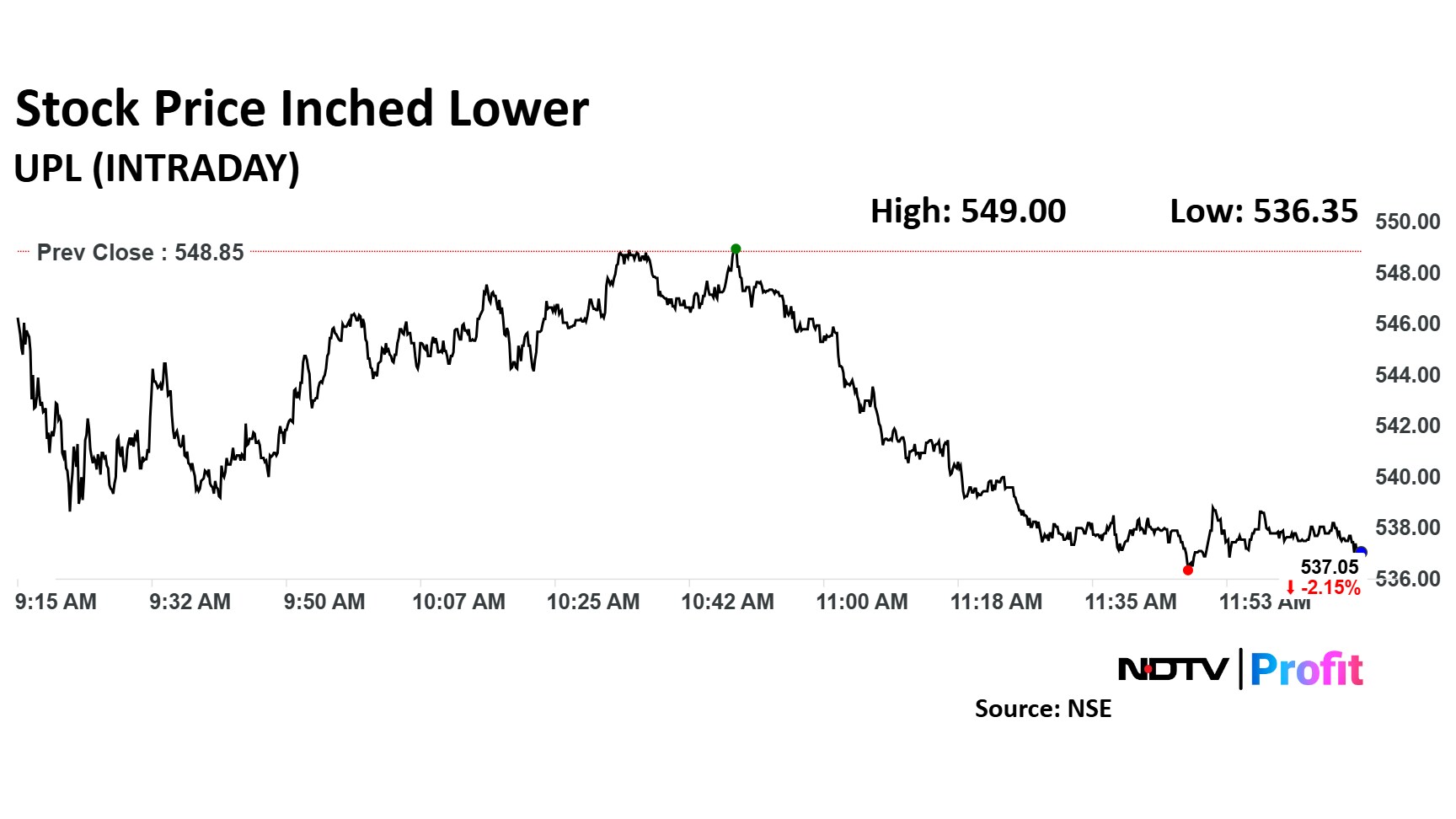 The scrip fell as much as 2.28% to Rs 536.35 apiece. It pared losses to trade 2.03% lower at Rs 537.70 apiece, as of 12:07 a.m. This compares to a 0.89% decline in the NSE Nifty 50.