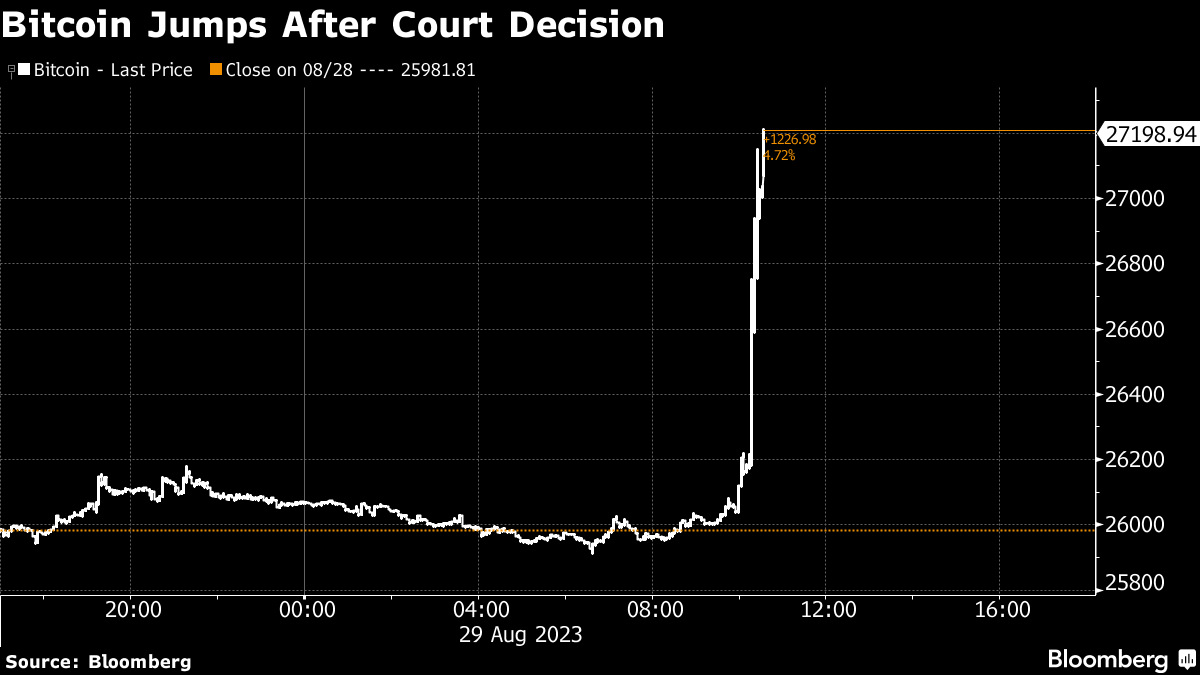 (Bloomberg) -- Grayscale Investments LLC got backing from a federal court to launch the first Bitcoin exchange-traded fund in the US, a watershed moment in the cryptocurrency industry's quest to tap billions of dollars from everyday investors.