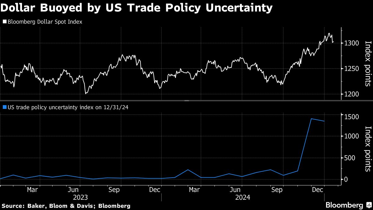 The dollar's advance is driven in part by demand for havens as policy uncertainty under Trump administration spurs jitters in the $7.5 trillion-a-day foreign-exchange market. A resilient US economy, high interest rates and the dollar's unrivaled status as the world's dominant reserve currency are also raising the prospect of further gains in the greenback.