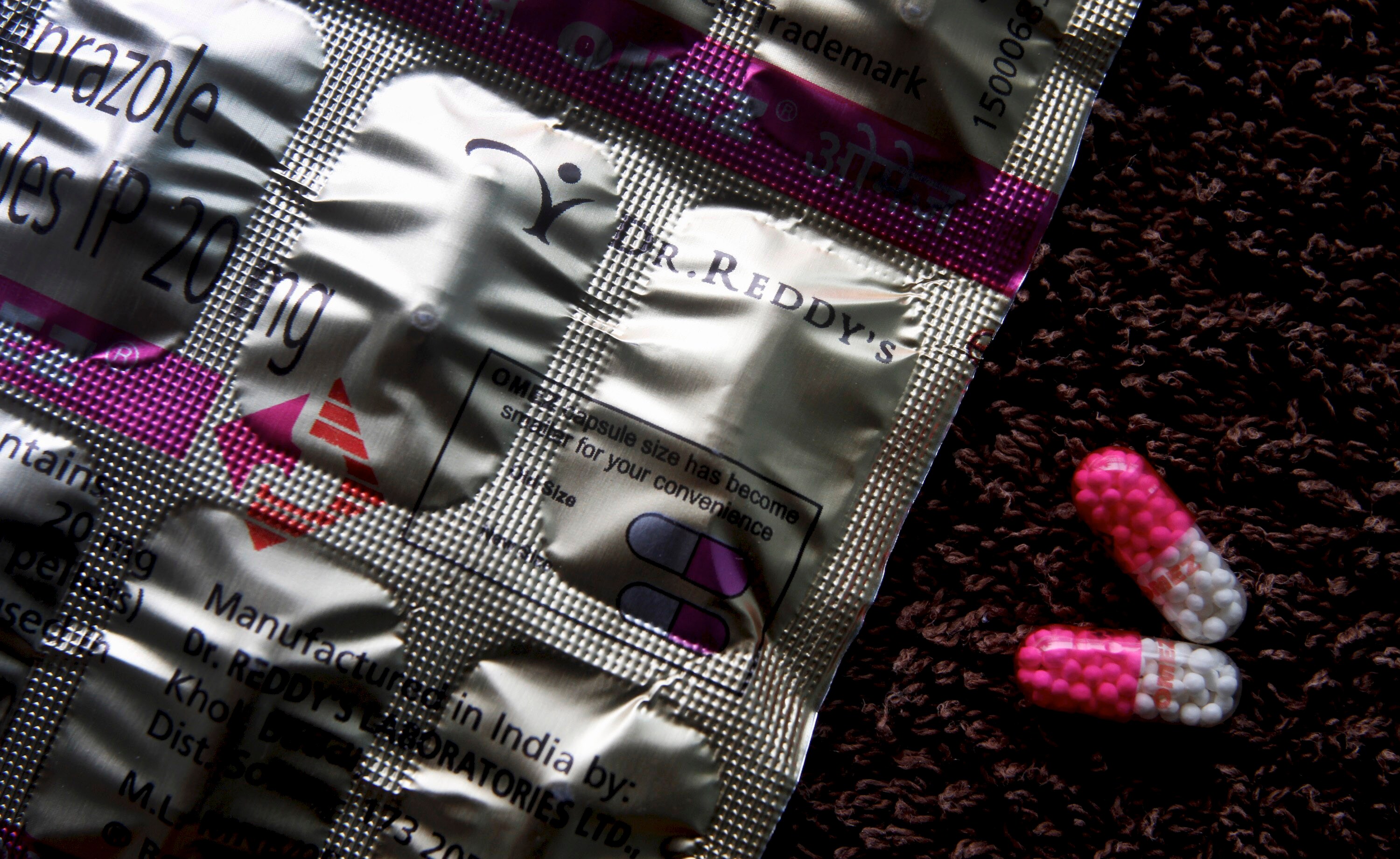 Dr. Reddy’s Laboratories Ltd. Omeprazole capsules are arranged for a photograph in Mumbai, India. (Photographer: Adeel Halim/Bloomberg)
