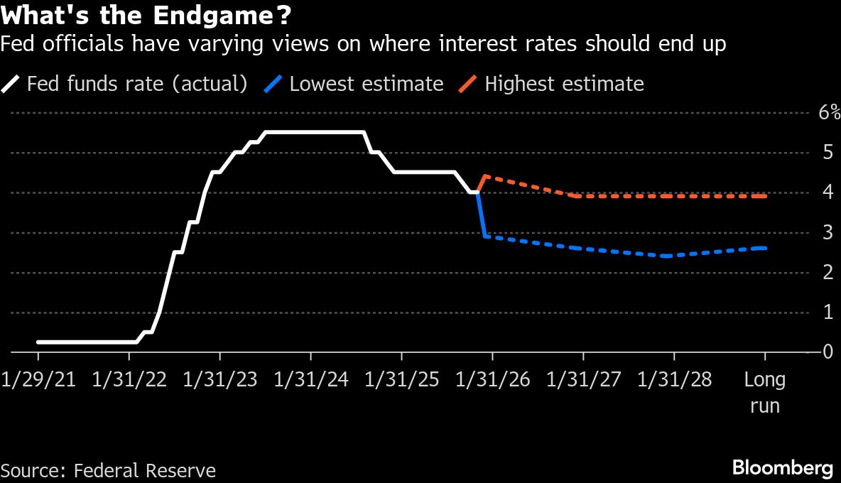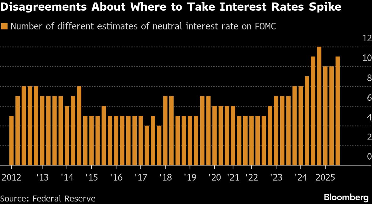 In the past year or so, prescriptions for where rates should end up have diverged by the most since at least 2012, when US central bankers started publishing their estimates.