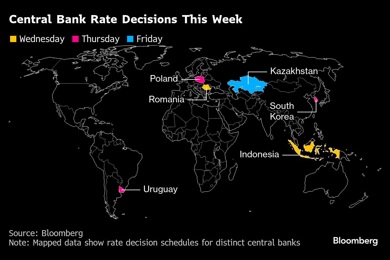• Russia will release inflation figures, weeks after the central bank held rates at a record-high 21%. Officials are struggling to contain price growth that's been running at more than twice their 4% target for months.