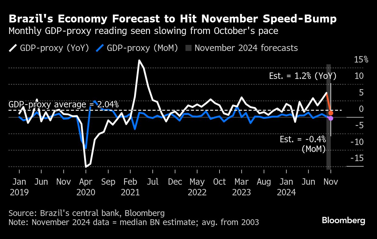 Month-on-month GDP-proxy figures for November may turn negative as the year-on-year reading drops from October's 7.31% pace.
