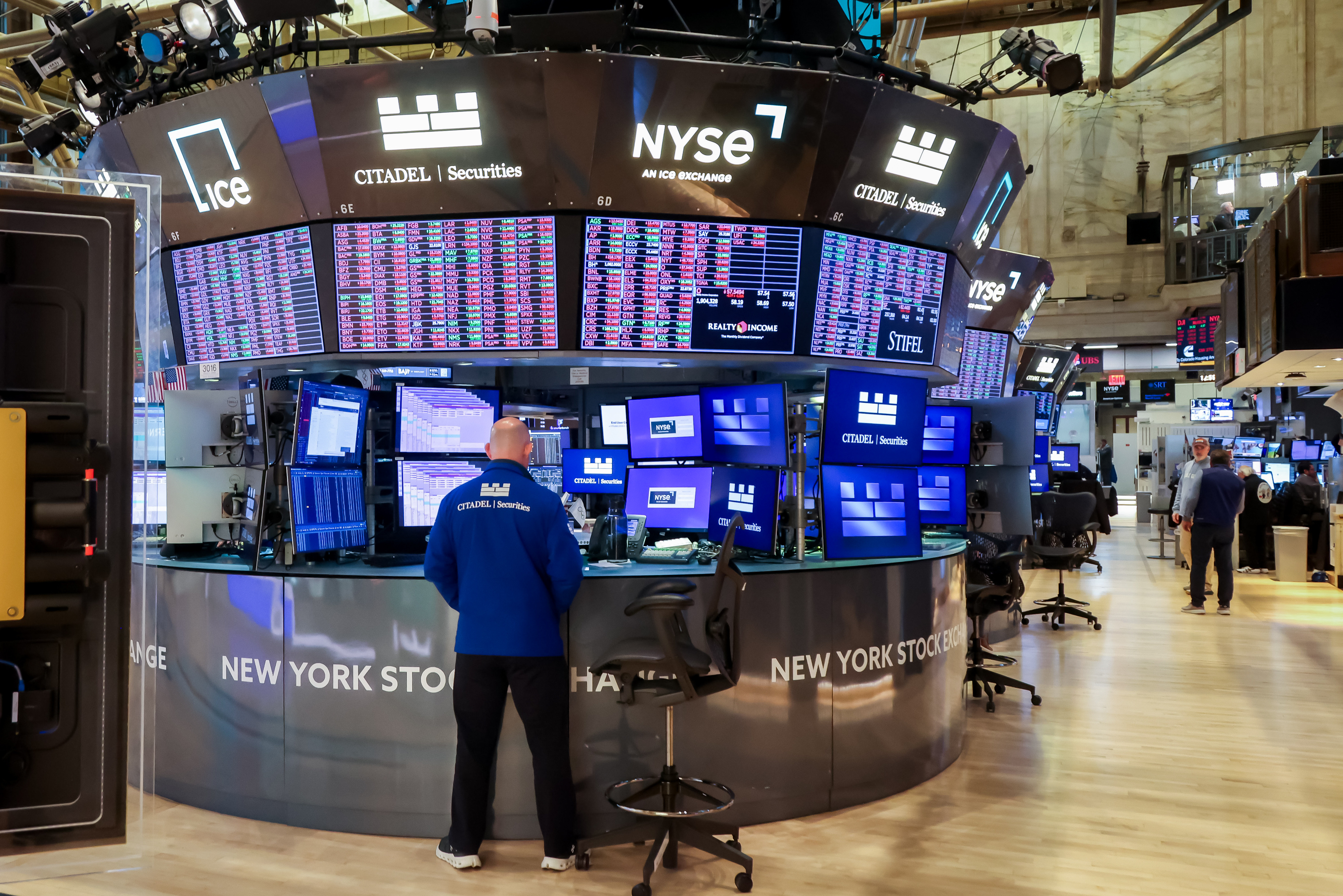 Traders work on the floor of the New York Stock Exchange (NYSE) in New York on April 21. Photographer: Michael Nagle/Bloomberg