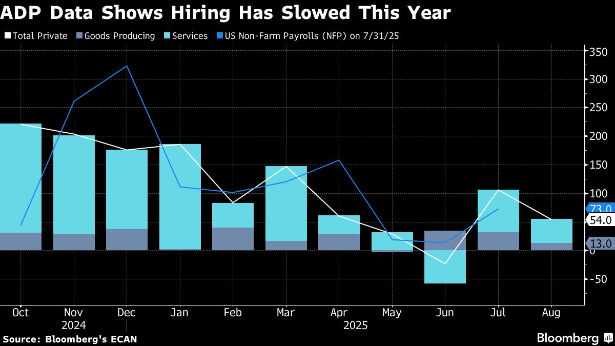 ADP's private employment numbers rose less than economists expected in August, while Challenger job cuts announcements climbed, touching the highest year-to-date since 2020. ADP chief economist Nela Richardson highlighted a “noticeable slowdown” in hiring during a media call.