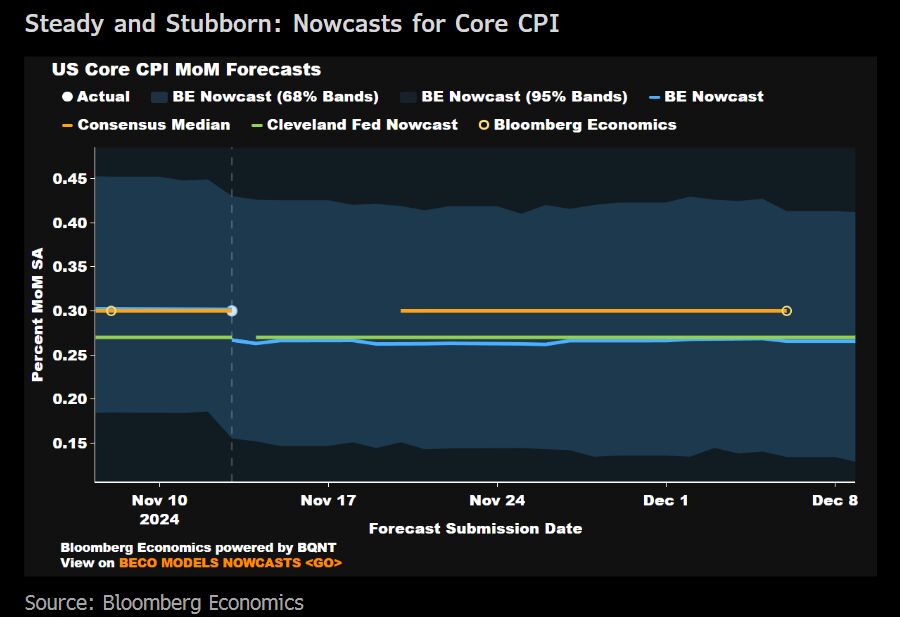 A Bloomberg Economics nowcast supports expectations of a sticky core reading, while flagging downside risk to the headline measure.