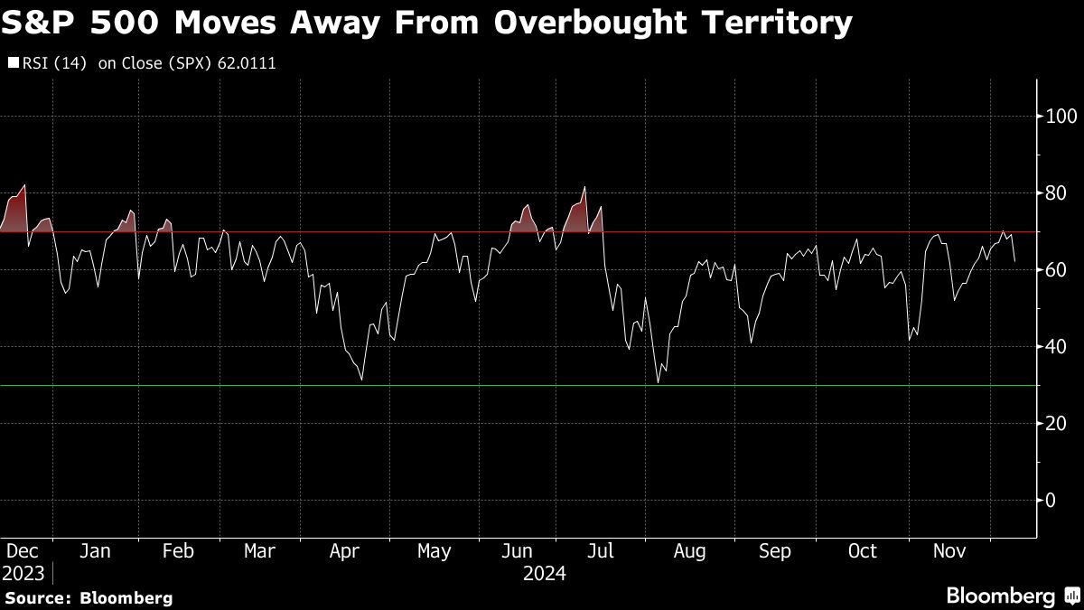 The S&P 500 dropped from nearly overbought technical levels, following a series of all-time highs. Nvidia Corp. slid as China opened a probe over suspicions the giant US chipmaker broke anti-monopoly laws around a 2020 deal. Meantime, Chinese stocks that are listed in the US staged a sharp rally as top leaders in Beijing used their most direct language yet on providing monetary easing and boosting domestic consumption.