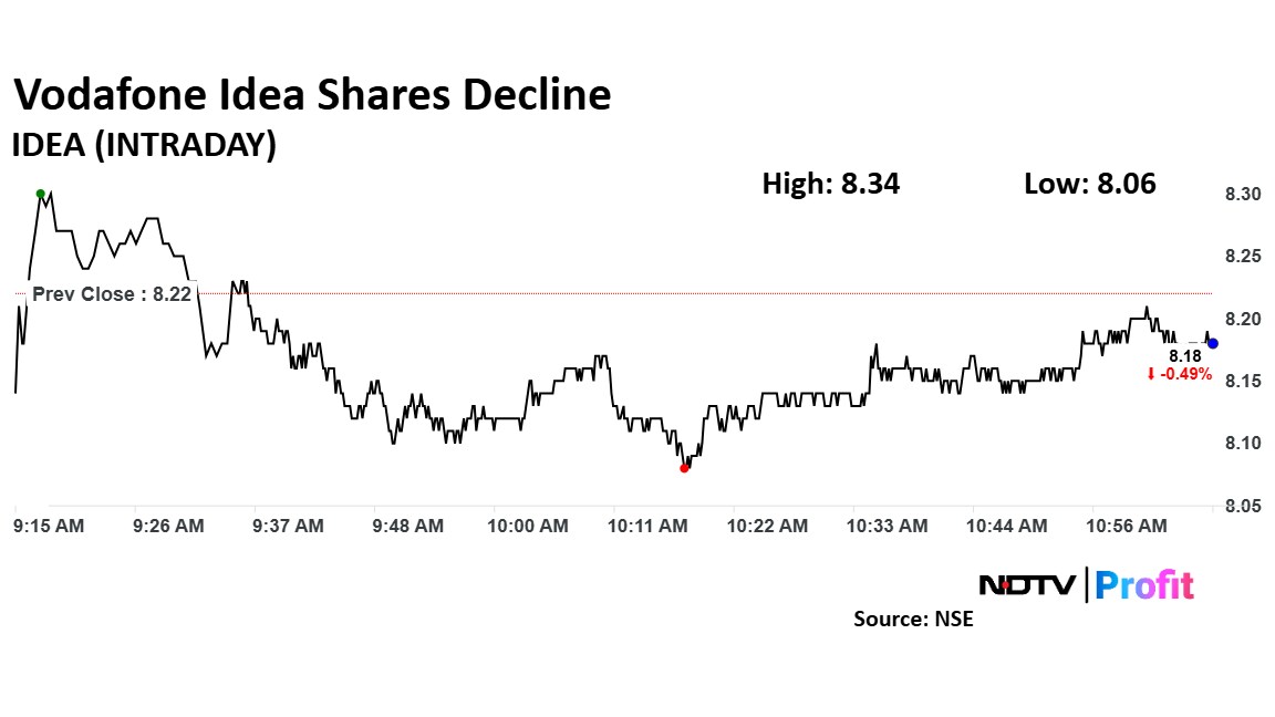 Shares of Vodafone Idea Ltd. fell nearly 2% on Thursday as investors began profit booking. This comes after the shares rose nearly 26% on Tuesday and hit over one-month high.