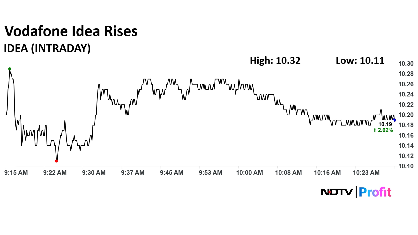Vodafone Idea share price rose 3.93% to Rs 10.32 apiece. (Photo: Vijay Sartape/NDTV Profit)