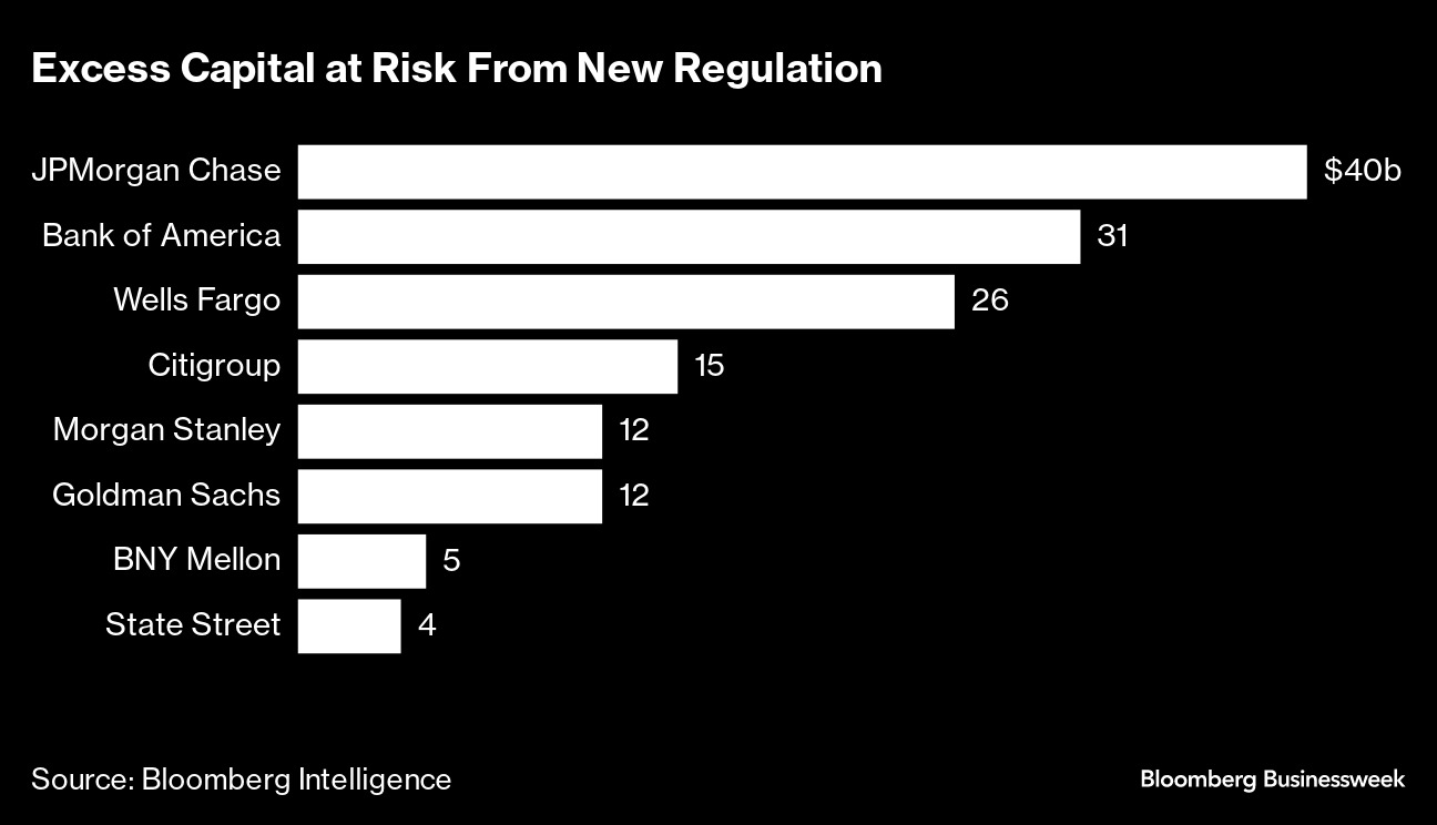 The eight biggest US banks currently have capital requirements ranging from $9 to $13 for every $100 in risk-weighted assets. Under the new rules, they would need to add roughly $2 more.