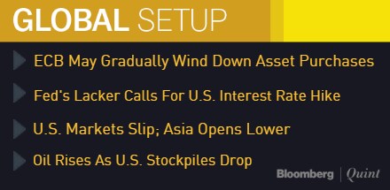 Federal Reserve Bank of Richmond President Jeffrey Lacker called for tighter monetary policy from the U.S. central bank. Lacker urged the Fed to hike rates to stave off a likely pickup in inflation that would force bigger increases later. Lacker's comments come just days after Cleveland Fed President Loretta Mester signalled that a rate hike could be possible in November.